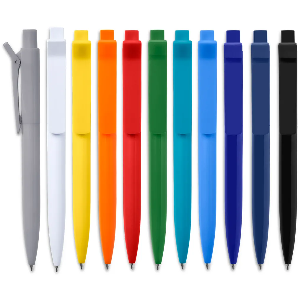 The large, hinged clip of this ball pen allows you to easily clip it to a pocket or hold a pile of papers together. It also provides plenty of space for bold and prominent branding of your logo or message. ABS black German ink minimum 1,200 metres writing distance