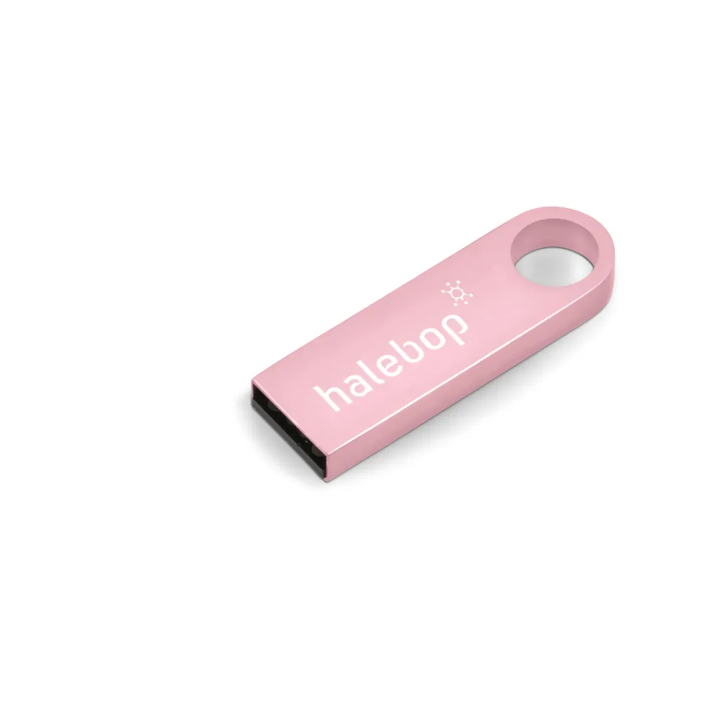 A small and compact metal flash drive with 16GB of storage capacity. 5 ( l ) x 1.3 ( w ) x 0.5 ( h ) zinc alloy version 2.0 microfibre presentation pouch: 6 ( l ) x 5 ( w )